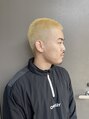 ブリーチ、ハイトーンカラー、坊主、ボウズ、BUZZ、ベリーショート、あえてのワンブリーチで黄みを残すのも男くさくてGOOD。根元が伸びてくるとまた雰囲気変わってさらに調子良くなります。