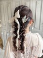 ブリーチなし透明感ブラウンカラー前髪顔まわりカットヘアセットUP