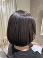 首元がすっきり見えるくびれボブ。トップに自然なボリュームが出るようにカットし、まとまりやすく整えています。カラーとグロストリートメントで艶を出した大人女性におすすめのスタイルです。
