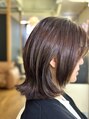 大人ウルフローレイヤー鎖骨レングスで自然と跳ねるようにチークラインからマッシュルームラインでウルフローレイヤーで自然なくびれイルミナカラー アンバー 光沢のあるブラウンに