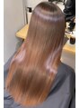 2ヶ月前に縮毛矯正をされたお客様。今回は髪質改善トリートメントとカラーで艶感を最大限に引き出しました。柔らかさとまとまりを両立した美髪ロングです。