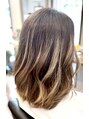 以前入れたバレイヤージュデザインが伸びてきているところにリタッチカラーをし、綺麗なグラデーションを作りました♪カラー後ケアプロトリートメント(超音波アイロン)で艶々に!!