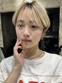 丸みがありながらスッキリするマッシュベースのショートボブにカットしています。顔まわり切り込んで前上がりにしてます。カラーはハイトーンにして、ベージュで夏っぽくしています。原宿 表参道 青山 駅近