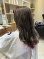 水素カラーで全体的にアッシュでトーンダウンをして裾カラーにくすんだ赤を入れました。水素カラーでツヤツヤサラサラになりました。
