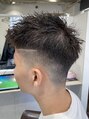 フェードスタイルにツイストパーマをあてたスタイルです!これから夏に向けてオススメのスタイルの1つです!グリースやジェルなどのウェットなスタイリングがオススメ!