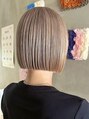 前髪なし透明感ミルクティーベージュ大人ボブ小顔カット
