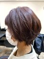 カラーチェンジ!いつものブラウンにほんのりピンクを入れると雰囲気も柔らかく、髪の艶もより際立ちます^^襟足はすっきりのボブ感を強めにしたショートボブです。