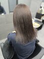 赤みを抑えた柔らかなミルクティーベージュカラーが、透明感と女性らしさを演出。ストレート仕上げでまとまり感のあるロングスタイルに。軽やかな印象を与えるので、春夏にもおすすめ。手触りもツヤも◎な上品スタイルです。
