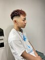 赤色のフェードクロップスタイル。〈メンズ/メンズカット/理容/理容室/バーバー/フェード/フェードカット/スキンフェード/メンズパーマ/ツイストスパイラル/スパイラルパーマ/ツイストパーマ/眉カット/国分寺〉