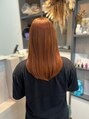 発色の良いシナモンオレンジカラーが目を惹く、ナチュラルストレートスタイル。暖色系カラーで肌なじみが良く、柔らかく女性らしい印象に。毛先にかけて自然にまとまるフォルムで、ストンと落ちるシルエットが美しい仕上がりです。