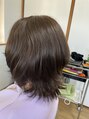 ミディアムウルフです。お客様のご要望で正面からの写真はありませんが、顔周りが隠れるようなレイヤーも入ってます。。。色は明るさを保ったままベージュ系をオンしました。ご相談お待ちしております。