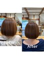 前下がりボブをベースに、質感と毛量を調整して軽やか&扱いやすく。乾かすだけでまとまるので、毎日のスタイリングも簡単スタイル更新|ボブカット|ナチュラルボブがお好きな方におすすめです。