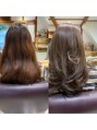 退色してきたオレンジ味をしっかりリセット。透明感たっぷりのグレージュカラーで、柔らかく洗練された印象に