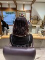 パーマをかけたばかりの髪に、退色を抑える暗めのボルドーカラーで深みとツヤ感をプラス。さらにトリートメントで柔らかさとまとまりを引き出しましたいつもありがとうございます。またのご来店お待ちしております。