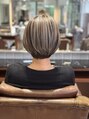 コントラストを生かしたハイライト/ショートボブ/ハイトーン/ケアブリーチ/ハイライト/アジアンカラー/アルティストカラー/透明感カラー