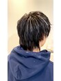 メンズのハイライト!ブリーチしているところは2回、他のところは暗くコントラストがある黒とグレーのカラー!