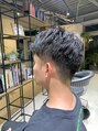 短めのメンズツーブロックスタイル。サイド3ミリのブロックを入れ、バックはサイドに自然につなげました^ ^ジェルでウェットな質感に♪