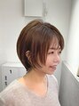 顔まわりにレイヤーをしっかりめに入れた、キャットレイヤーショート。毛量が多くても軽くなって扱いも楽になるのでオススメです!コンパクトでフィットする髪にしたい方はお気軽にご相談ください。