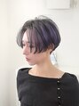 ハンサムショートのハイトーンラベンダーグレージュにアンブレラカラーと毛先にローライトを入れることでスタイルのメリハリを出しつつプリンを気になりにくくしたスタイル。全頭ブリーチベースでも影の存在が大人っぽさを演出します。