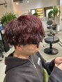 深みのあるボルドーをベースに、根元から毛先まで濃淡をつけたシャドウカラー。光の当たり方で表情が変わり、重ためマッシュでも立体感のある仕上がりにしてます☆