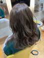 細かハイライトを全体に入れてあります。勿論、保護と補強をしてのハイライトなので手触りもさほど変わらずにダメージ軽減してあります。全体的にはラベンダーアッシュで、落ち着いたベージュ系に移行していく過程も楽しめるはずです。仕上げはゆる巻きで