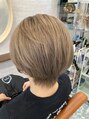 ダブルカラーでベージュに。ブリーチ一回でも綺麗なベージュになります!カットはツーセクションのショートスタイルで大人可愛く。