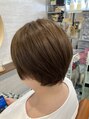 ハイトーンの白髪染め?ぼかし?でベージュ系に!縮毛矯正してますが、極自然に見えるようにカットしてあります♪乾かすだけでツヤサラの丸みショートに!
