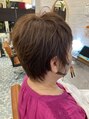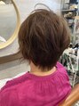 個性的なスタイルに!との事で、アシンメトリーなデザインを。ツーセクションでショートレイヤーでカットして、右サイドはスッキリレイヤーなショートに。左サイドは前下がりのボブレイヤーで遊びのある雰囲気に♪