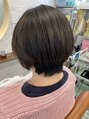 ショートスタイルの縮毛矯正です。硬毛で見た目以上にねじれが強い髪質です。乾かすたけでまとまる毛先が、自然に内に入るよう仕上げてあります。