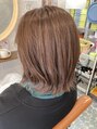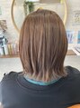 ギリギリ縛れる長さの切っぱなしスタイル。カラーは前回のピンク系からオリーブベージュに♪乾かすだけでもok。自然な外ハネで朝も楽ちんです♪