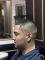 バズカット×スキンフェード。ラインアップをしっかり施すことで引き締まって見え、ブラックヘアの様なスタイルを再現することができます。(和光/バーバー/メンズ)〈理容室〉