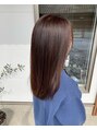 クセを取り除いて表面を整え、メテオトリートメント配合のカラーリングで色味と髪に必要な栄養を補給します。過度に伸ばしすぎてシャキシャキ・ツンツンにならぬよう、髪の状態に合わせて個別に薬剤選定します。地毛の様なストレートにしていきます。