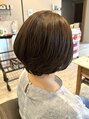 サイドはグラデーションで丸みをつけて、バックは襟足をすっきりと毛量調整!表面にレイヤーを入れてふんわり感や毛流れがつきやすいようにカットしています♪全体的におさまりやすいスタイルなので、ハネやすいけどショートにしたい方にオススメです☆