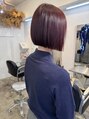 ブリーチなしハイトーンレッドブラウンミニボブ切りっぱなし