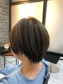 表面にハイライトを入れたショートスタイルです。全体的にすき間を入れるカットとの相乗効果で、頭を小さく見せつつ、動きと束感を出すことができます。