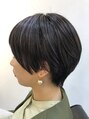 表面にハイライトを入れて、青系パープルを入れたショートスタイルです。黒ベースに入れることで全体が引き締まり、大人ショートのアクセントとして効果を発揮してくれます。