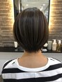 ハイライト部分にアッシュグレーのカラーを入れたショートスタイルです。手ぐしだけでキレイなシルエットが出せるように骨格に合わせた長さと毛量調節を施しています。