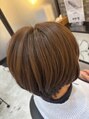 2ヶ月毎カットカラーでご来店くださる60代のお客様です。ケアカラーでのハリコシアップやアフターケアでのダメージ抑制に加え、ホームケアでもサロンシャンプーとエイジングケアのグランを使用して頂いているので、ツヤやボリューム感がキープできます。