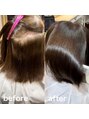 ダメージ毛でも、ここまでツヤツヤに♪アメイジングストレートが髪内部を整え、黒髪本来のしなやかさと輝きを引き出しました。