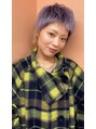 ベリーショートの軽やかさを、ホワイトバイオレットの透明感で引き立てたスタイル。ブロンドをデザインカラーで馴染ませることで、単色では出せない柔らかな立体感を出します。作り込みすぎない質感に仕上げることで、上品でナチュラルな印象を与えます。