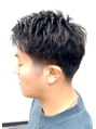前髪はツーブロックで顔周りすっきり。爽やかに仕上がりました。これで暑い夏も乗り切れそうですね。ツーブロックの位置は低めなので、ビジネスシーンにも対応できますし、ツーブロックが初めての方も挑戦しやすいですよ。