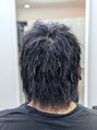 丸いシルエットが特徴のマッシュ、そして襟足が長めのウルフスタイルをミックスしたマッシュウルフです。今回はさらにチリチリ強めのツイストパーマをあてました。長さを残した髪型なのでパーマとの相性も良いですよ。