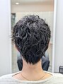 ぐりんとした動きが魅力のスパイラルパーマです。ある程度長さがあるので、しっかりカール感が出てカッコ良いですね。襟足はハサミで一番短く、そして耳周りも短く見えるように拘りました。顔周りから前髪にかけては長さを残しています。