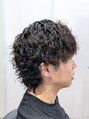 サイドのみツーブロックにツイストスパイラル、毛先はスパイラルで動き方を変えています。しっかり動きが出ますが、膨らみすぎず収まりが良いのがツイストスパイラルの特徴です。スパイラル特有の、外国人風の動きが欲しい方にもおすすめの組み合わせです。