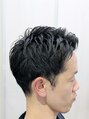 サッカーの柿谷選手風ヘアです。おでこを出すと顔周りがすっきりし、爽やかな印象になりますね。サイドはツーブロック9ミリ。長めに残したいけれど、少し短くもしてみたい方に丁度良いミリ数です。刈り上げに抵抗がある方も挑戦しやすいですよ。