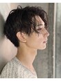 メンズヘア!ユニセックスな前下がりのパーマスタイル 黒髪ヘア