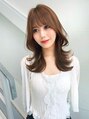 顔まわりにレイヤーが入っており、ふんわりとした動きを出しています。前髪は優しい印象と抜け感をプラスして、ナチュラルな雰囲気に仕上げました。自然なツヤが出るブラウン系のカラーが施されており、上品で柔らかい印象に。