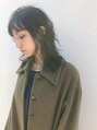 全体にレイヤーをいれたミディアムウルフスタイル。パーマで動きを出すと◎ショートバングとも相性がいいおすすめスタイルです。