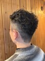 細くてボリュームの出にくい髪質でもパーマによって楽にボリュームが出せるようになります。サイドとバックは短く刈り込んでスッキリ感を出しました。/メンズ /理容室 /バーバー /白髪ぼかし/シェービング /眉毛 /ヘッドスパ