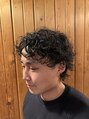 癖毛を活かしたパーマ風のミディアムマッシュ。扱いに困る人が多い癖毛ですが、ウェットに仕上げることでパーマ風の質感を出すことができます。/メンズ /理容室 /バーバー /白髪ぼかし/シェービング /眉毛 /ヘッドスパ